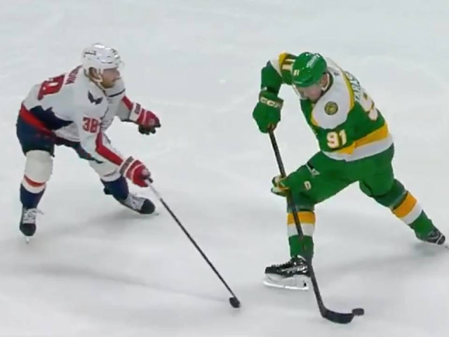 Watch as Minnesota Wild forward Vladimir Tarasenko makes a slick between-the-legs move to get past Washington Capitals defenceman Rasmus Sandin before setting up teammate Danila Yurov for an easy finish.