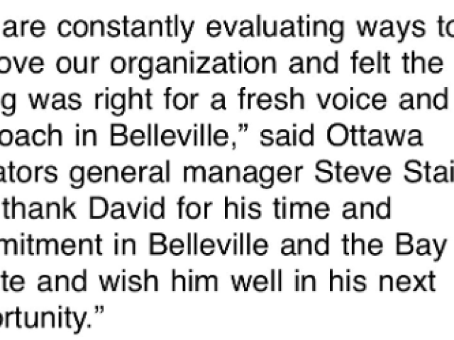 The Ottawa Senators have an extra day off between games this week and Steve Staios has decided to make the most of his down time, announcing some significant changes in the American Hockey League. Head Coach David Bell has been relieved of his duties