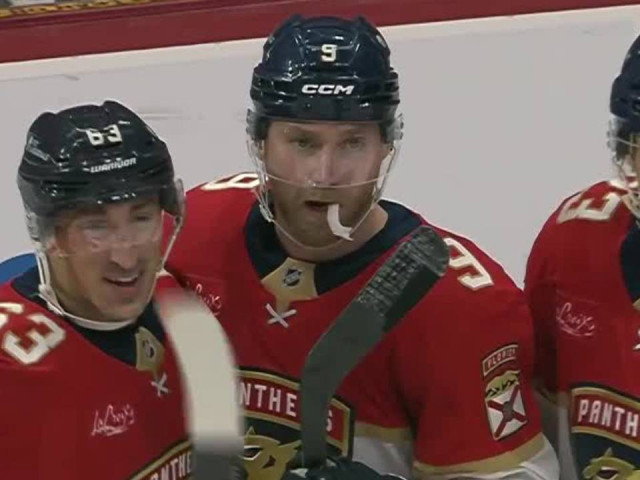 Watch as Florida Panthers forward Sam Bennett deflects a hard pass from Brad Marchand into a tight window over the shoulder of Los Angeles Kings goaltender Anton Forsberg.