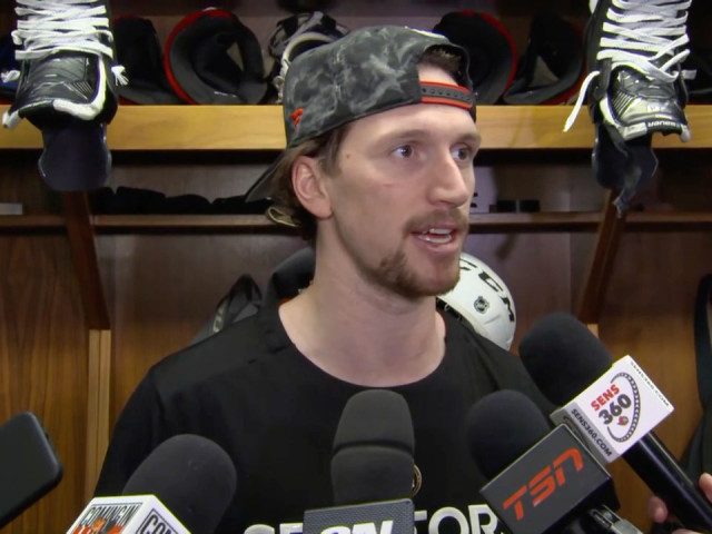 Ottawa Senators defenceman Thomas Chabot on Linus Ullmark skating with the team at practice, saying it’s great to have him back and how he brings energy in the locker room.