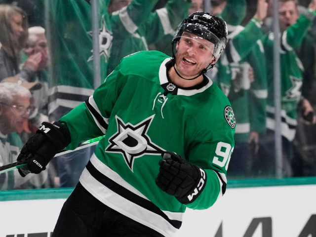 Watch as Dallas Stars forward Mikko Rantanen picks up speed through the neutral zone and dangles past Los Angeles Kings forward Kevin Fiala before wiring a shot past Anton Forsberg.